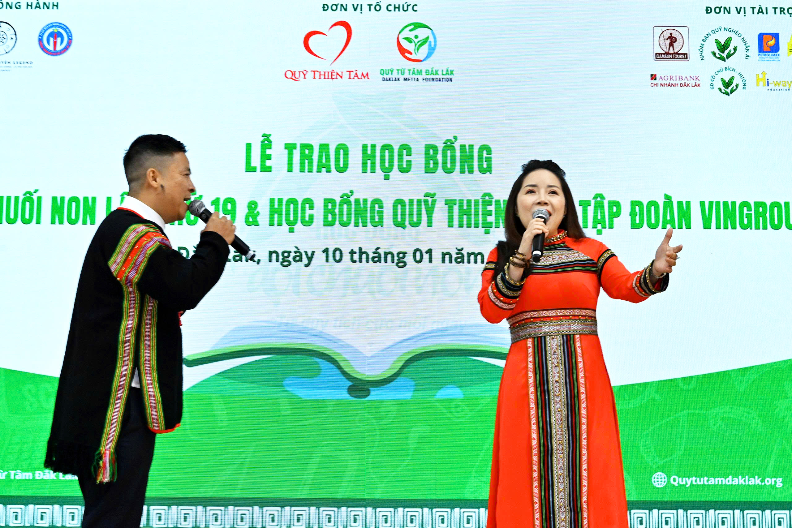 Còn nhiều nữa những câu chuyện HS-SV không may mắc bệnh hiểm nghèo, khuyết tật, mồ côi cha mẹ, gia cảnh đặc biệt khó khăn nhưng trước mọi thử thách nghiệt ngã của số phận đã không đầu hàng, không tuyệt vọng mà vẫn nỗ lực phi thường để học giỏi. Nhưng phần giao lưu đã thu gọn, nhường thời gian cho tiếng hát cao vút của ca sĩ quê Đắk Lắk-Nguyễn Duyên Quỳnh, cũng từng là một gương sáng hiếu học, hâm nóng cả hội trường với ca khúc "Viết tiếp câu chuyện hòa bình" nổi tiếng của nhạc sĩ Nguyễn Văn Chung. Phần văn nghệ của buổi lễ trao học bổng với những tiết mục của các trường THCS Lương Thế Vinh, THPT Lê Quý Đôn, THPT Buôn Ma Thuột, đôi ca sĩ Lê Duy Giang-Lê Thảo đã góp phần thu hút tất cả cử tọa đến phút cuối chương trình.