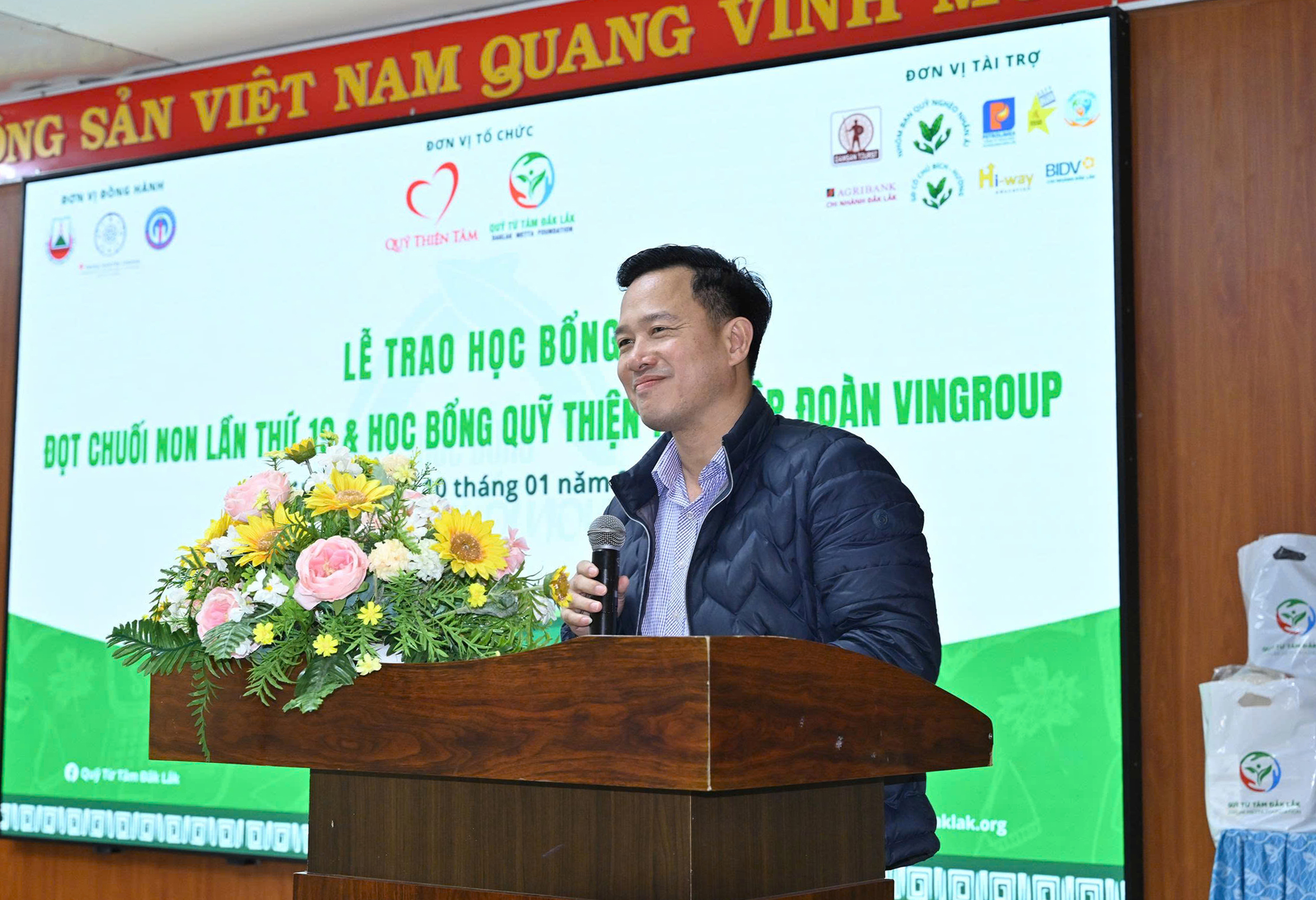 Quỹ Từ Tâm Đắk Lắk trân trọng cảm ơn 2 đơn vị đồng hành đặc biệt: Quỹ Thiện Tâm và Tập đoàn Trung Nguyên Legend. Cảm ơn quý vị lãnh đạo các cơ quan, Sở ngành, phóng viên các báo đài đã đến dự lễ. Quỹ Từ Tâm Đắk Lắk cảm ơn các nhà tài trợ đã chung tay vun đắp chương trình Học bổng Đọt Chuối Non đầy ý nghĩa này: Ngân hàng Agribank CN Đắk Lắk, Công đoàn cơ sở Ngân hàng BIDV CN Đắk Lắk, Nhóm bạn Quỹ Nghèo Nhân Ái, Công ty TNHH MTV PETROLIMEX Đắk Lắk, Công ty Du lịch và Thương mại Đam San, Gia đình Cô chú Phan Thị Hường-Hoàng Như Bích, Hội Hữu nghị Pháp Việt vùng Choisy Le Roi, Công Ty TNHH MTV Thiện Nguyện Sun For Life, Trung tâm Giáo dục Ngoại ngữ HI-WAY, Ông Đậu Thương Binh, Thầy thuốc Khăm Phết Lào, Tập thể BGH-Cán bộ nhân viên, học sinh trường THCS Lương Thế Vinh, Khách sạn Hà Nam, Khách sạn Ban Mê, Trường TH-THCS-THPT Hoàng Việt, Cô Trương Thị Mộng Thơ-Bánh mì Hà Nội, Anh Chị Minh Trang-Dang The Hoa, Chị Nam Hà Lại, Nhóm bạn Bếp chị Lương Thuý, TNV CLB Đắk Lắk Đại Ngàn, nhóm chị em Bếp Tâm Thiện v.v…