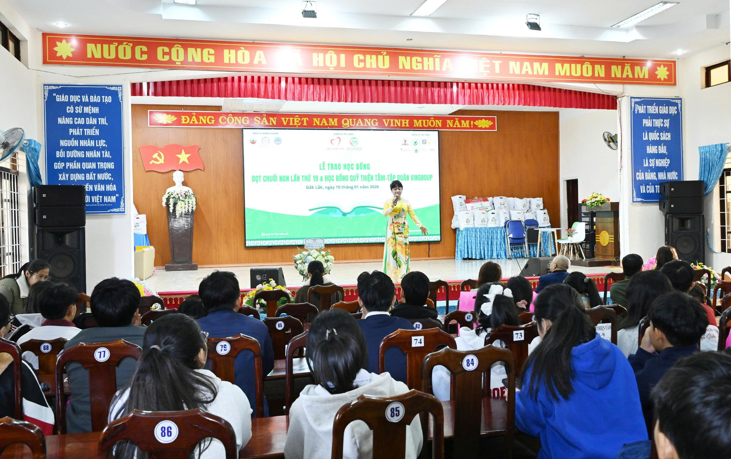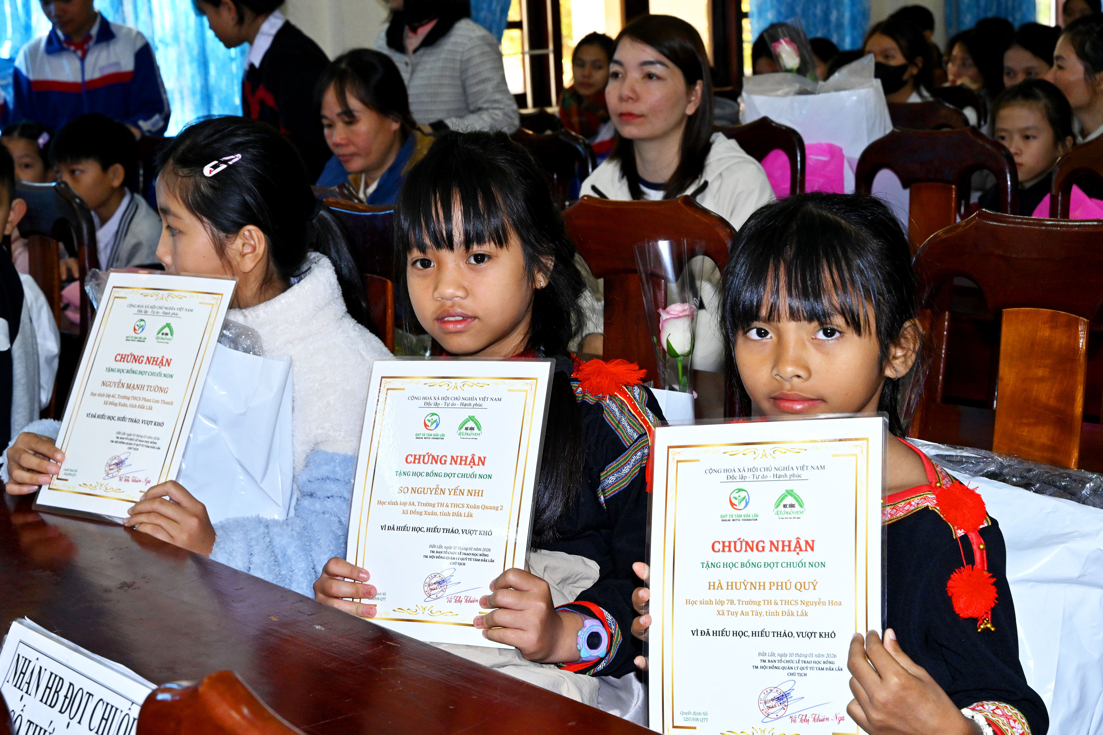 Ngoài trời lạnh giá, trong khán phòng vô cùng ấm áp, với tất cả các vị khách mời đặc biệt. Trong số 150 học sinh-sinh viên xuất sắc, hiếu học hiếu thảo từ các trường trên toàn tỉnh được 2 Quỹ chọn trao Học bổng, có một số HS-SV xin phép vắng mặt vì bận thi, vì ốm đau, còn lại phần lớn đi cùng người thân; Những nhà tài trợ bền bỉ và cả những nhà tài trợ mới lần đầu đến với chương trình; Sự đón khách nồng hậu chu đáo của Ban tổ chức buổi lễ và Ban giám hiệu, cô trò trường THCS Lương Thế Vinh; Các nhóm tình nguyện viên của Hội và Quỹ Từ Tâm Đắk Lắk lặng lẽ chăm sóc ân cần từng đoàn thầy trò từ xa vượt chặng đường hàng trăm cây số đến Buôn Ma Thuột ....