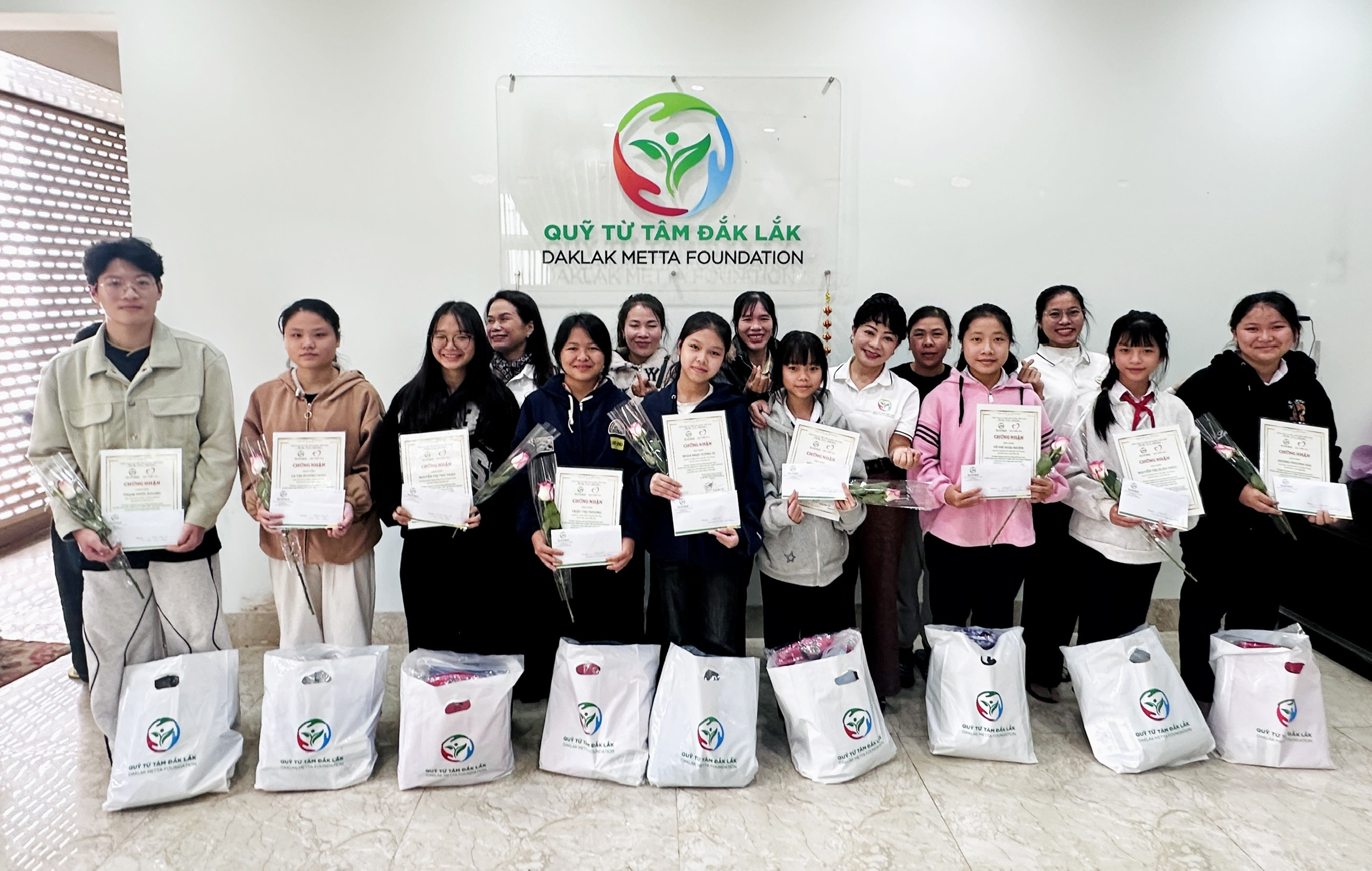 Nhiều học sinh-sinh viên bận thi đến nhận học bổng và quà sau buổi lễ tại Văn phòng Quỹ Từ Tâm Đắk Lắk