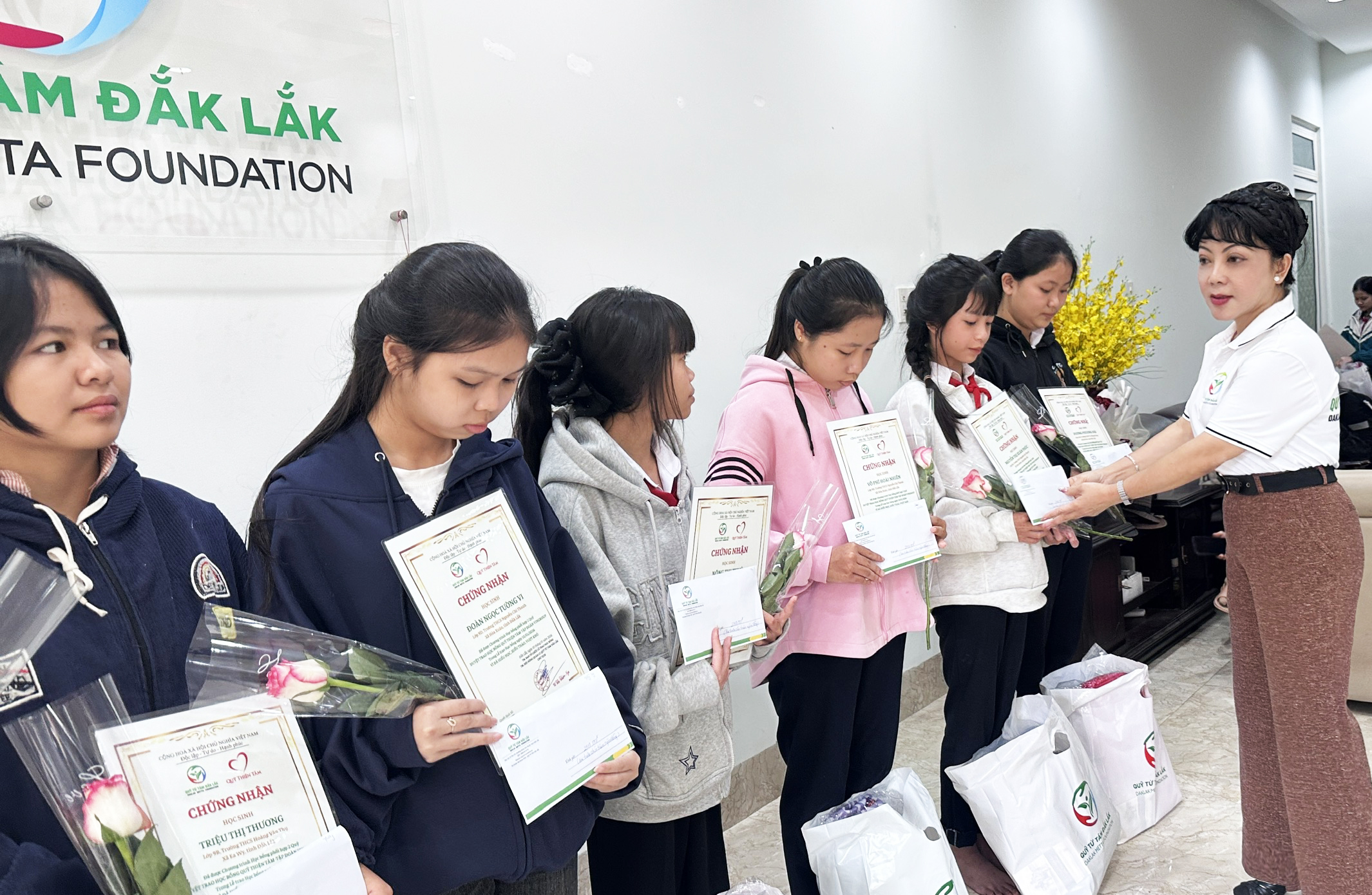 Chủ tịch Quỹ Từ Tâm Đắk Lắk tiếp tục trao học bổng cho HS-SV đến các ngày trong tuần sau buổi lễ